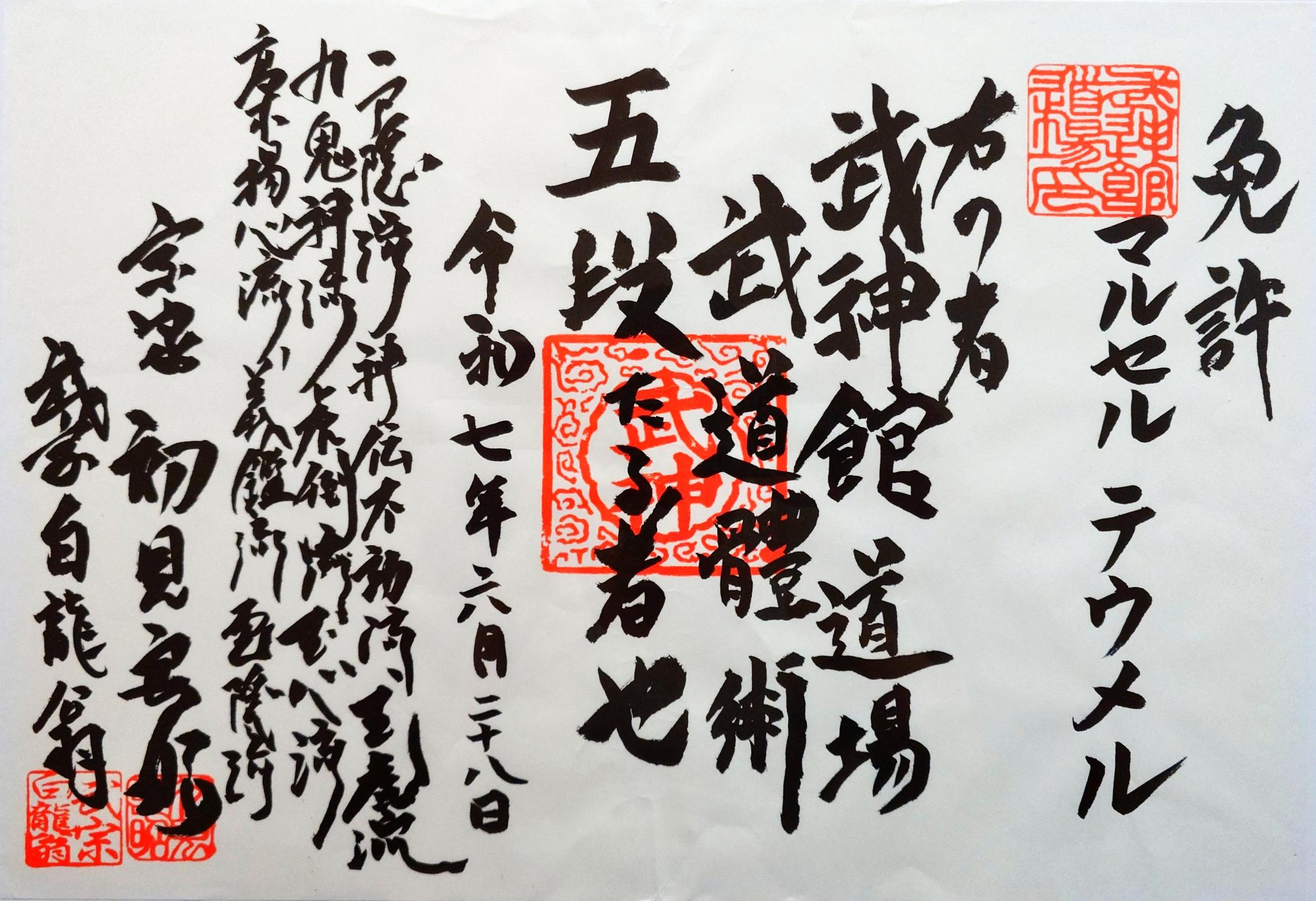 - Godan [五段] (5th degree black belt, June 28, 2025)