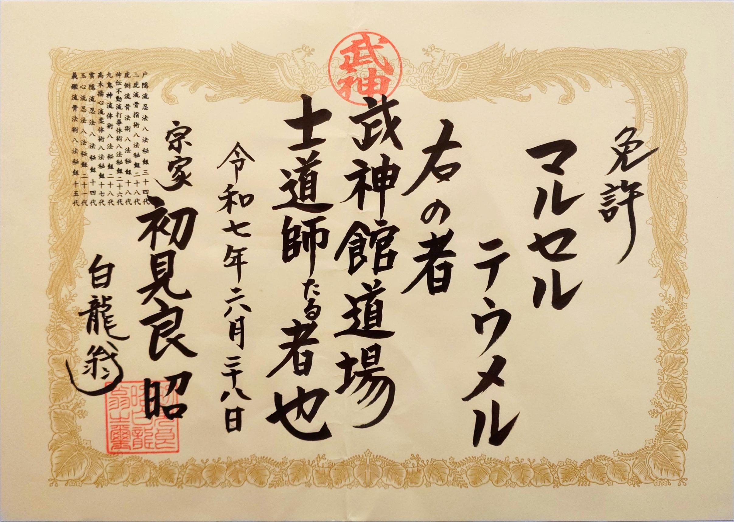 - Shidōshi [士道師] (full teacher, June 28, 2025)